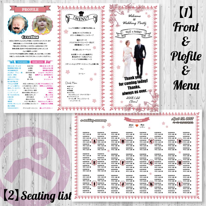 桜デザインの写真入りオーダーメイド席次表です♪人気のさくらウェディングなどに是非♪おしゃれかわいいピンクを基調としたデザインです★結婚式、ウェディングパーティーをおしゃれ楽しく演出★ゲストへのおもてなしサプライズにもなり思い出に残る結婚式に!